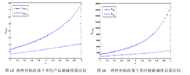 (1)無論是政府補貼企業還是消費者,三種合作策略下企業碳減排量和利潤、單位產品碳減排量、供應鏈碳減排總量和利潤、產品產量都隨著政府補貼 s 增加而增加,一體化下最高;消費者實際支付的價格都隨著政府補貼的增加而降低,一體化下價格最低。綜上所述,供應鏈企業應當選擇一體化合作策略。