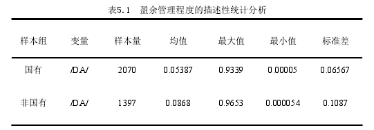 (1)國有企業和非國有企業均存在盈余管理現象,且整體上非國有企業盈余管理程度高于國有企業。