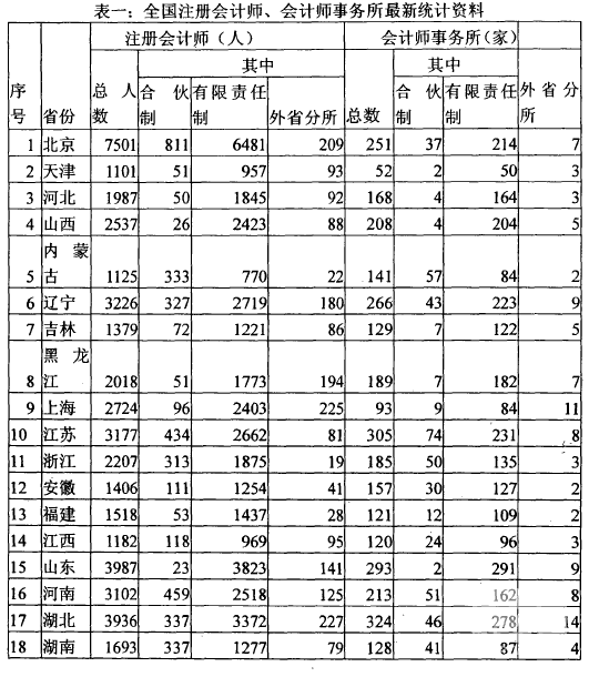 自1980年恢復注冊會計師制度以來,由于掛靠體制及財政與審計兩部門的競爭原因,事務所數量急劇擴大,曾一度達到6000多家。盡管于1998年事務所進行脫鉤改制,截止到2003年12月31日全國仍有4627家,從業的注冊會計師61255人,平均每所13人。見表一。