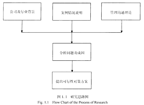 研究思路:研究由于內(nèi)、外溝通不暢,導(dǎo)致企業(yè)內(nèi)部管理混亂,生產(chǎn)的產(chǎn)品不滿足消費(fèi)者需求的問(wèn)題,采用了銷(xiāo)傳量不佳、客戶不滿和員工大量跳槽三個(gè)實(shí)際發(fā)生的情況與管理學(xué)理論相結(jié)合,分析問(wèn)題并提出可行性對(duì)策方案。具體研究思路如圖1.1所示。
