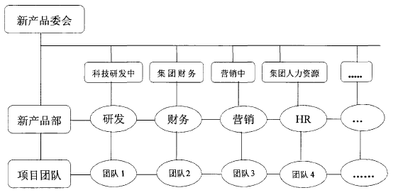 華羚集團為了保證實現突破發展瓶頸的經營目標,為藏地益寶蛋白質粉的開發上市建立了專門的新產品開發組織,該組織屬于矩陣式組織結構,主要包括新產品委員會、新產品部和項目團隊,各部門的成員是由集團各職能部門抽調的員工,上至高層管理者,下至基層生產工人,組成新的組織為藏地益寶開發上市服務。具體組織結構圖如下: